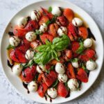 A fresh and vibrant Balsamic Strawberry Caprese salad combining juicy strawberries, creamy mozzarella, and fragrant basil, all drizzled with tangy balsamic glaze and rich extra virgin olive oil. Perfect as a light appetizer or side dish with a beautiful presentation and ready in just 15 minutes.