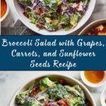 To elevate your Broccoli Salad with Grapes, Carrots, and Sunflower Seeds Recipe, try garnishing with a handful of extra sunflower seeds for texture contrast and a light sprinkle of freshly chopped parsley or green onions for a vibrant touch and freshness. A few extra halved grapes on top can also add color to the presentation and entice guests to dig in.