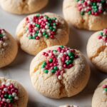 6. Form and Chill Dough: Roll the dough into 1 tablespoon-sized balls. Optionally, dip the dough balls into sprinkles for decoration. Arrange the dough balls on a tray and refrigerate for 30 minutes to help cookies hold their shape during baking.