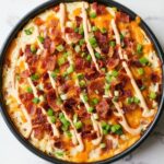 Sliced green onions are the classic finishing touch, adding a crisp, mildly pungent brightness that cuts through the rich, creamy layers. If you’re feeling adventurous, you could also sprinkle some chopped fresh cilantro or a light drizzle of blue cheese dressing to elevate the flavors further.