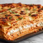 This Buffalo Chicken Lasagna is a flavorful twist on traditional lasagna, combining shredded chicken tossed in tangy buffalo sauce with creamy ricotta and melting mozzarella cheeses. Layers of tender lasagna noodles, spicy buffalo chicken, and rich cheese are baked to bubbling perfection, creating a satisfying, spicy, and cheesy casserole that’s perfect for game day or a hearty family dinner.