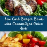 A delicious and low-carb twist on the classic burger, these Burger Bowls with Caramelized Onion Aioli feature seasoned ground beef served over fresh greens and topped with cherry tomatoes, pickles, avocado, and a rich, flavorful caramelized onion aioli. Perfect for a gluten-free, satisfying meal that’s easy to prepare on the stovetop.