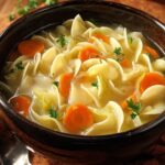 Add a sprinkle of freshly chopped parsley or a small handful of chopped green onions on top for a burst of color and a fresh, herby note that complements the soup’s flavors. A dash of freshly ground black pepper can also brighten the presentation and add a gentle kick.