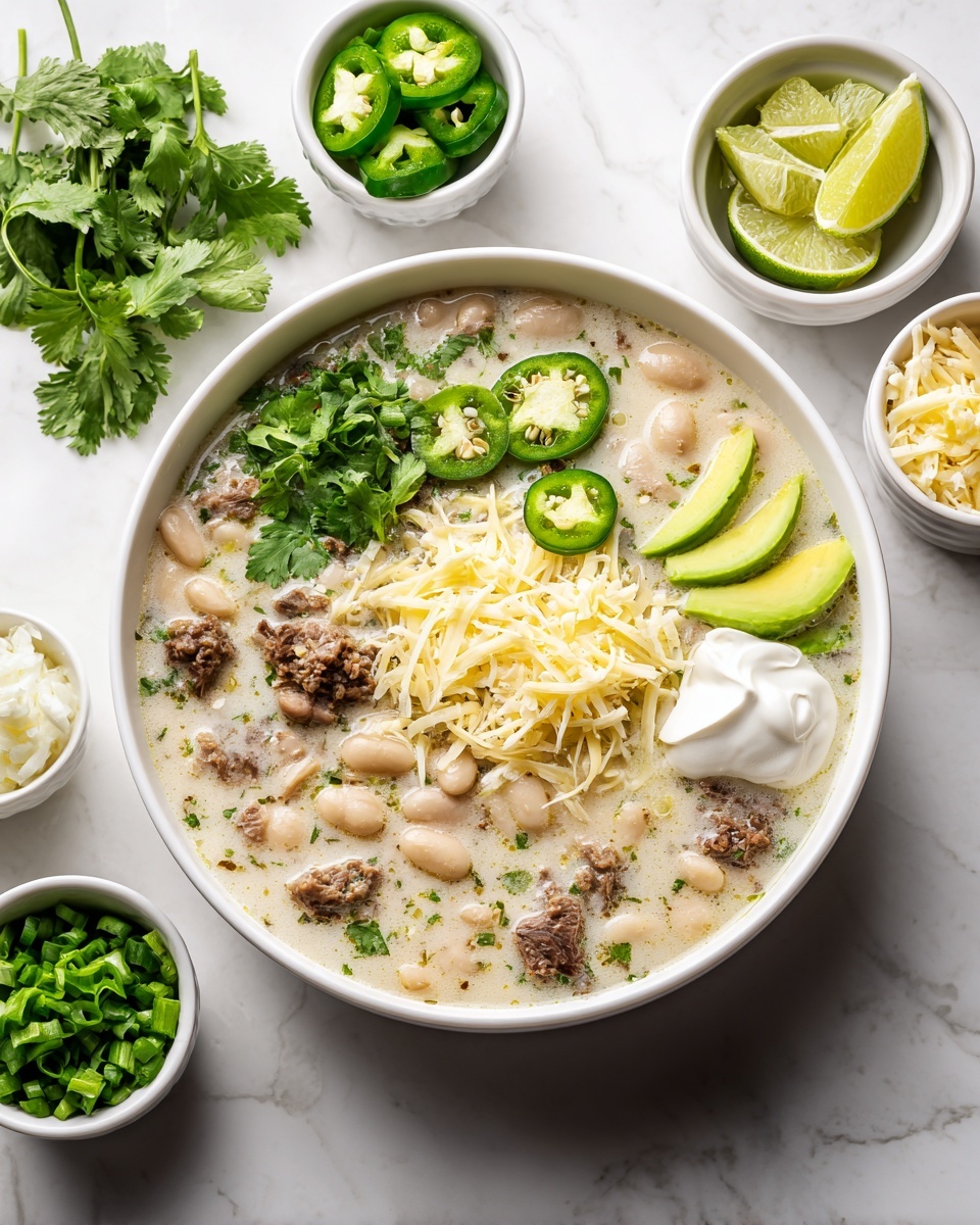 This chili pairs wonderfully with classic southern sides like warm cornbread or crispy tortilla chips, each offering a contrasting texture that complements the creamy chili. You could also serve it alongside a simple salad to lighten the meal or some steamed rice to soak up every last flavorful drop.