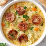 A rich and creamy Cheesy Rotel Soup with smoky sausage, diced tomatoes with green chilies, and a cheesy pasta base. Perfect for a comforting, hearty meal that’s easy to prepare on the stovetop.