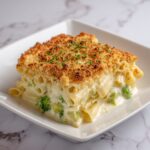 This Chicken Broccoli Alfredo Bake with a Crispy Topping is a comforting and creamy pasta casserole featuring tender chicken, nutritious broccoli, and a rich homemade Alfredo sauce. Finished with a golden, crunchy panko Parmesan crust, it’s a perfect family-friendly main dish that combines rich flavors with satisfying textures baked to perfection.