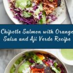 A vibrant and flavorful Chipotle Salmon recipe featuring tender baked salmon filets seasoned with smoky chipotle and brown sugar, paired with a fresh orange cabbage salsa and a zesty Aji Verde sauce. This dish combines baked and broiled salmon with a crisp, citrusy slaw and creamy herbaceous sauce, perfect for a fresh and balanced meal that serves four.