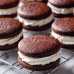 Once your chocolate cookies are completely cool, it’s time to create those picture-perfect whoopie pies. Spread a generous dollop of the marshmallow filling onto the flat side of one cookie, then gently sandwich it with another cookie. Press just enough to spread the filling evenly without squishing out all the fluff. The result? An irresistible, gooey sandwich that’s as delightful to bite into as it is to look at.
