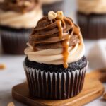 Chocolate and peanut butter is a dream team, and garnish can make your cupcakes even more irresistible. Chopped mini Reese’s peanut butter cups add crunch and an extra creamy peanut punch, but crushed peanuts or a drizzle of melted chocolate also pair beautifully. Sprinkling a pinch of flaky sea salt on top can even elevate the flavors in the frosting.