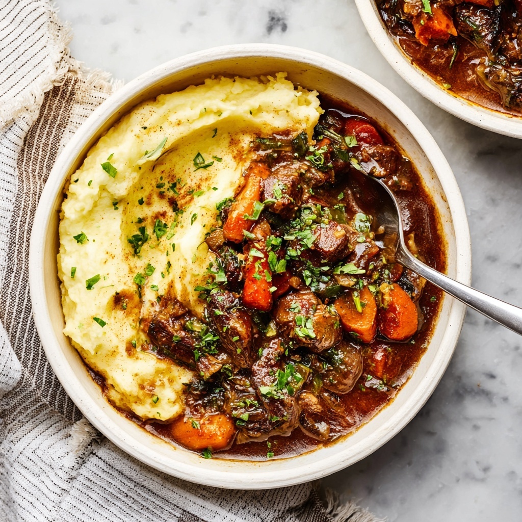 Don’t underestimate the power of a fresh garnish. A generous sprinkle of chopped parsley not only adds a lovely burst of green, but also provides a fresh herbal note that balances the richness of the stew beautifully.