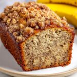 Wrap any leftover banana bread tightly in plastic wrap or store it in an airtight container at room temperature for up to 3 days. This helps retain the soft texture while the coffee cake topping remains crisp.