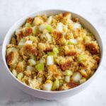 This Cornbread Stuffing with Apples is a savory and slightly sweet side dish perfect for holiday meals or any comforting dinner. It combines golden baked cornbread cubes with sautéed onions, celery, and crisp apples, all moistened with broth and baked until the top is perfectly golden and crispy.