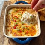 Bake the dip for 20 to 25 minutes until it’s hot, bubbly, and the edges have started to turn a light golden brown. When it’s fresh out of the oven, sprinkle with the additional chopped green onions to add a fresh, vibrant touch that balances the decadent richness.