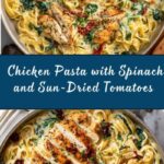 This Creamy Chicken Pasta with Spinach and Sun-Dried Tomatoes Recipe pairs wonderfully with simple sides like a crisp garden salad, garlic bread brushed with olive oil, or roasted vegetables. The light freshness of these options balances the indulgent pasta, making your meal well-rounded and satisfying.