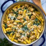 6. Combine Pasta and Sauce: Mix the drained pasta into the creamy chicken mixture in the skillet. If desired, add lemon juice for brightness. Toss gently to coat the pasta evenly with the sauce.