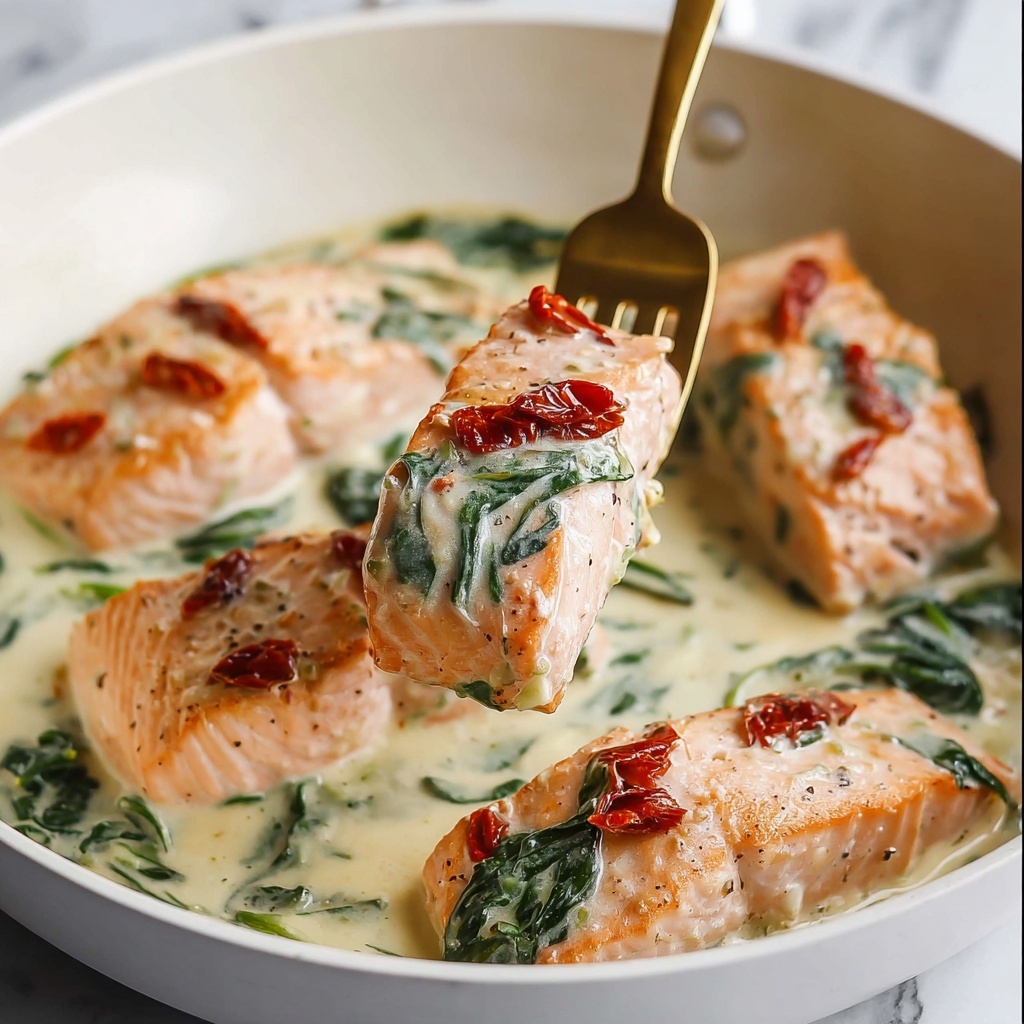 To reheat, gently warm the sauce over low heat, stirring frequently to bring it back together. Then add the salmon fillets back in just long enough to warm through, avoiding overcooking. This technique ensures every bite stays tender and creamy.