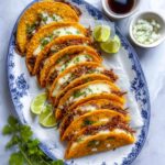 Want to impress friends or make taco night extra special? Present your Crispy Cheesy Quesabirria Tacos Recipe as a DIY taco bar. Lay out all the garnishes, limes, and side dishes so everyone can customize their own. Or serve on a rustic wooden board with little bowls of consomme for dipping, making the meal interactive and festive. You could even turn shredded birria into nachos, layering chips, cheese, meat, and toppings for another irresistible variation.