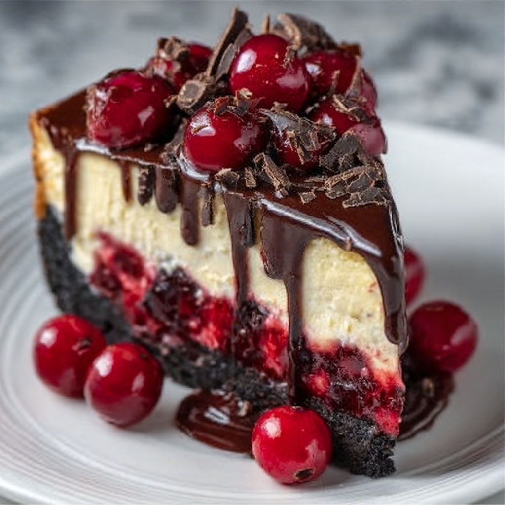 This Decadent Black Forest Cheesecake combines the rich, creamy texture of chocolate cheesecake with the classic cherry topping of the Black Forest cake. Featuring a chocolate cookie crust, luscious cocoa-infused cream cheese filling, and topped with sweet cherry pie filling, this dessert is perfect for holiday gatherings or special occasions. Optional whipped cream and chocolate shavings add an extra touch of elegance.