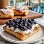 This Decadent Blueberry Cream Cheese Danish recipe combines flaky puff pastry with a creamy, sweetened cream cheese filling topped with a luscious blueberry compote. Perfect for breakfast, brunch, or a delightful dessert, these Danish pastries are easy to prepare and bake to golden perfection in just 30 minutes.