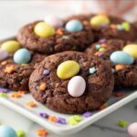 Delight in these festive Easter Egg Brownie Cookies, perfectly chewy with rich fudgy brownie flavor and colorful pastel candy sprinkles. Each cookie is topped with iconic Cadbury mini eggs for a playful burst of sweetness, making them a fun and easy treat for springtime celebrations or holiday gatherings.