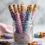 Enhance your presentation by adding a few extra sprinkles, edible glitter, or even tiny pastel-colored candies alongside the pretzel rods. These garnishes add a dash of whimsy and hint at the delicious flavors to come.