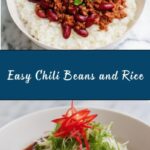 To finish, pile the hot chili beans over a bed of your choice of cooked white or brown rice. This simple step transforms the chili into a hearty, filling meal that’s ready in no time.