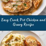 This Easy Crock Pot Chicken and Gravy recipe offers a comforting, hearty meal perfect for any day of the week. Tender boneless, skinless chicken breasts slow-cooked in a creamy chicken gravy made from simple pantry ingredients like chicken gravy mix, cream of chicken soup, and chicken broth. With minimal prep, this dish delivers flavorful, juicy chicken that shreds beautifully in the gravy. Optional sour cream adds richness, and parsley garnish brightens the finish. Serve it over mashed potatoes, rice, or buttered noodles for a satisfying and easy family dinner.