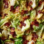 Once the cabbage is tender and slightly browned, stir in the apple cider vinegar, salt, black pepper, and red pepper flakes if you want a little heat. Finally, return the butter and crispy bacon to the skillet, stirring everything until the butter is melted and the flavors meld together in a silky, savory finish.