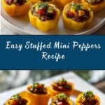 This Easy Stuffed Mini Peppers recipe features vibrant mini sweet peppers filled with a savory mixture of ground turkey or beef blended with creamy cheese and aromatic spices. Baked to perfection, these colorful appetizers or snacks are quick to prepare, bursting with flavor, and garnished with fresh herbs for a delightful finish.