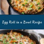 Reheat your Egg Roll in a Bowl Recipe in a skillet over medium heat for best results, stirring occasionally until warmed through. You can also microwave it—just cover to retain moisture and heat in one-minute intervals, stirring in between, so it heats evenly.