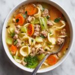 Egg Roll Soup is a flavorful, comforting soup inspired by the classic egg roll filling. Ground chicken or turkey is simmered with fresh vegetables like cabbage and carrots in a savory broth seasoned with garlic, ginger, soy sauce, and a hint of sesame oil. This quick and easy soup captures the delicious flavors of an egg roll in a warm, satisfying bowl, perfect for a weeknight meal.