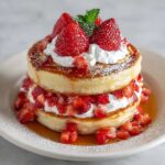 Fluffy Strawberry Cheesecake Pancakes combine light, tender pancakes with a rich and creamy cheesecake filling and a sweet strawberry compote. This delightful recipe makes a perfect weekend breakfast or brunch treat, layered with fresh strawberries, whipped cream, and drizzled with maple syrup for a balanced sweet and tangy flavor.