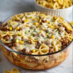 This Garlic Butter Ranch Beef and Roasted Corn Bowtie Casserole is a creamy, flavorful dish combining savory ground beef, ranch seasoning, sweet corn, and tender bowtie pasta, all baked to perfection under a melted cheddar cheese topping. Perfect for a comforting family dinner, it blends rich garlic butter and tangy sour cream for an irresistible casserole experience.