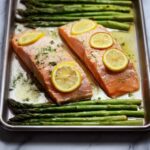 A quick and delicious Garlic Butter Salmon and Asparagus recipe that’s baked to perfection. This dish combines tender salmon fillets with fresh asparagus, all coated in a flavorful garlic butter sauce and finished with a hint of lemon. Perfect for a healthy weeknight dinner that comes together in under 20 minutes.