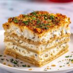 This Garlic Butter Shrimp Scampi Lasagna is a luxurious twist on classic lasagna, layering tender shrimp sautéed in garlic butter with creamy ricotta and melty mozzarella. The dish combines the bright flavors of lemon and white wine with a delectable cheesy seafood pasta bake, perfect for a special dinner or gathering. Easy to assemble and baked to golden perfection, this Italian-American favorite delivers comfort and elegance in every bite.