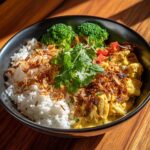 Before plating, taste the curry and add salt as needed to perfectly balance the flavors. Serve your Golden Coconut Chicken Curry garnished with fresh cilantro and a squeeze of lime to brighten and cut through the richness. You’re ready to enjoy a meal that’s as comforting as it is vibrant!