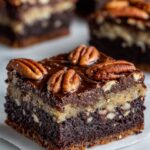These Gooey Pecan Pie Brownies are a decadent dessert combining rich, fudgy chocolate brownies with a sticky, sweet pecan pie topping. The bottom layer is a classic chocolate brownie with a moist, tender crumb, while the top is a gooey, caramel-like pecan pie mixture packed with crunchy pecans. Baked together in one pan, they deliver the best of both worlds in every bite—perfect for potlucks, holidays, or any time you crave a luscious treat.