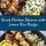 These Greek Chicken Skewers with Lemon Rice combine tender, juicy grilled chicken marinated in a zesty lemon and oregano mixture, served over fragrant and buttery lemon-infused rice. Perfectly balanced with fresh herbs and bright citrus flavors, this dish is a wholesome, gluten-free Mediterranean main course ideal for any occasion.