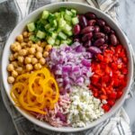 Place a generous dollop of hummus or tzatziki in the center of your bowl—this adds a creamy, flavorful touch that makes the dish feel indulgent yet wholesome. In a small bowl, whisk together olive oil, lemon juice, salt, and pepper, then drizzle the dressing over the entire salad. The zesty dressing ties each component together, enhancing the natural flavors without overpowering them.