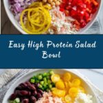 Serve the Healthy Protein Salad Bowl Recipe layered in a clear glass jar for a portable, visually appealing lunch option. Or arrange ingredients in separate bowls on a buffet table for a fun “build-your-own-bowl” setup that’s ideal for gatherings and meal prep variety.