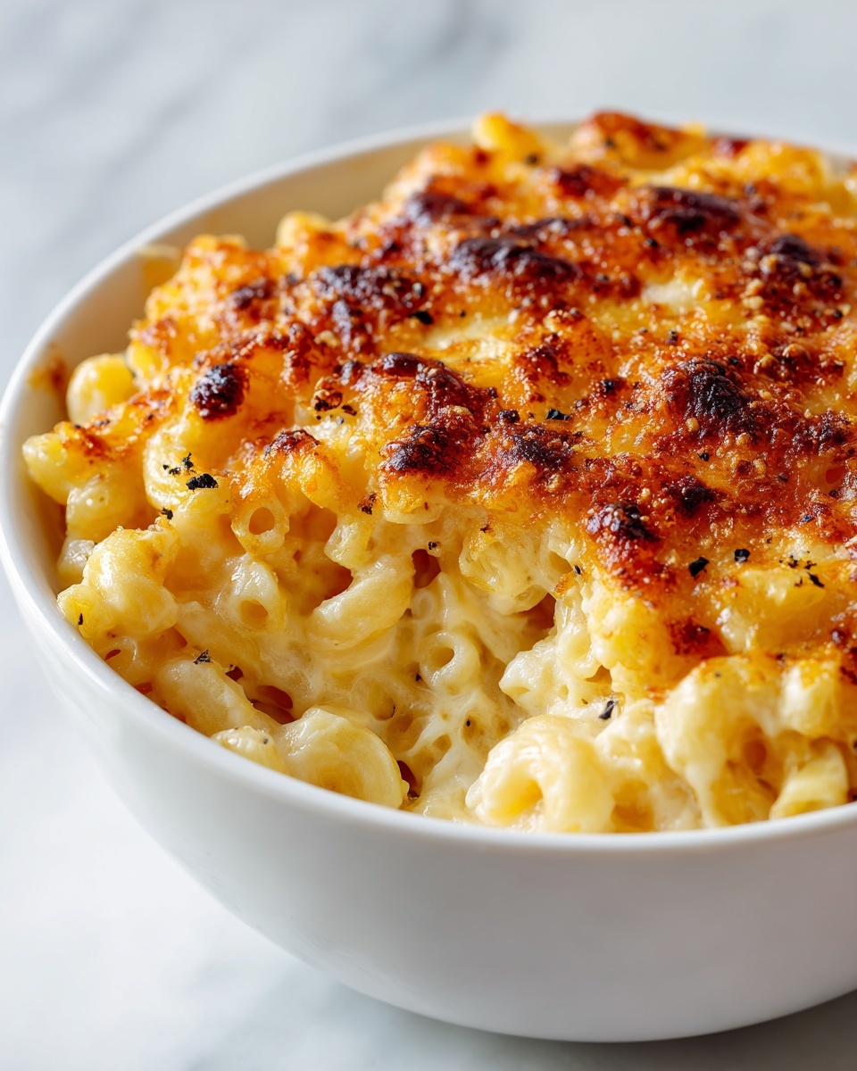 Serve it in individual ramekins and bake with a crunchy breadcrumb topping for a bubbly crust that adds satisfying texture. Or layer the mac and cheese with cooked veggies like spinach or tomatoes for a colorful casserole variation that feels special and wholesome.