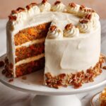 - Assemble the Cake: Place one cake layer on a serving plate, spread a generous amount of frosting on top, then place the second layer over it. Frost the top and sides of the entire cake evenly. You can garnish the cake with extra nuts or carrot decorations if desired.