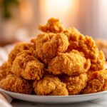 Homemade Popcorn Chicken is a crispy, bite-sized fried chicken snack that’s perfect for sharing or serving as a delicious appetizer. Tender chicken pieces are coated in a seasoned flour mixture, dipped in buttermilk, then coated with crunchy panko breadcrumbs before being fried to golden perfection. Serve hot with your favorite dipping sauces like honey mustard, ranch, BBQ, or sweet chili sauce for an irresistible treat.