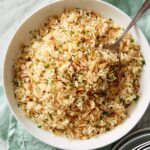 This rice pilaf freezes beautifully. Portion it into freezer-friendly containers or bags and freeze for up to 2 months. To avoid sogginess, try to pack in single servings, which makes it easier to thaw and reheat only what you need.