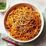 To reheat, warm the noodles gently on the stovetop with a splash of water or broth to loosen the sauce. Microwave works too—just add a few drops of liquid and cover to prevent drying out. Stir midway through heating for even warmth.