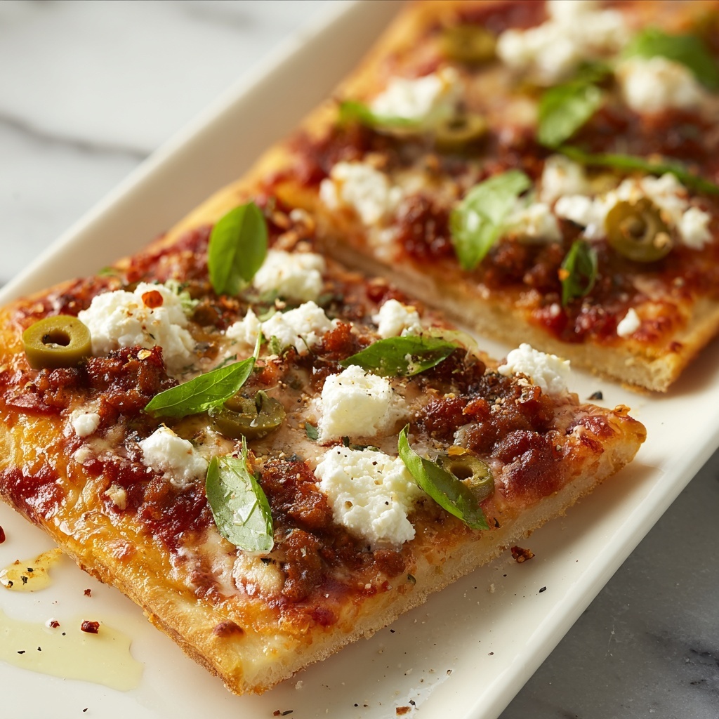 Take your freshly baked Lasagna Flatbread Recipe out of the oven and let it cool slightly before slicing. Serve hot for the best experience—each slice delivers that amazing blend of luscious cheese, savory sausage, and tangy marinara, all on a crisp, flavorful flatbread foundation.