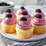 Spread or pipe the blackberry frosting generously onto each cooled cupcake. For a beautiful finishing touch, garnish with whole blackberries if you have them on hand, adding an elegant burst of color and extra fruitiness.