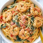 Freezing isn’t ideal for this recipe because the texture of the shrimp and pasta can change when thawed. However, if you must, store the cooked pasta and shrimp in a freezer-safe container for up to one month, then thaw overnight in the fridge before reheating gently.