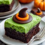 Serve this Melting Witch Poke Cake Recipe alongside a scoop of vanilla or mint ice cream for a cool contrast, or pair it with fresh berries that cut through the richness and add natural sweetness.