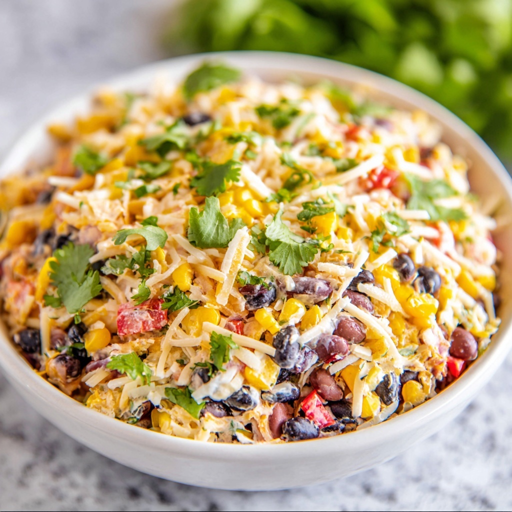 A refreshing and zesty Mexican Coleslaw featuring a creamy lime and taco seasoned dressing tossed with colorful vegetables and beans, perfect as a side dish or a light meal.